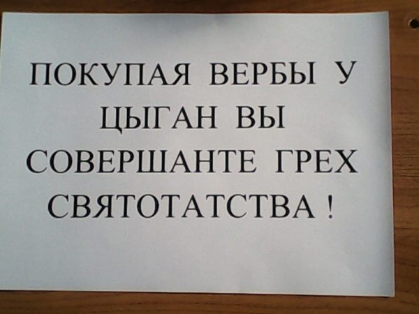 А вот тут можно и поспорить. Вдруг цыгане крещеные? Или, может, это не цыгане вовсе, а просто загоревшие люди. И вообще, еще неизвестно, что хуже — грех покупки верб у цыган или разжигание межнациональной розни.