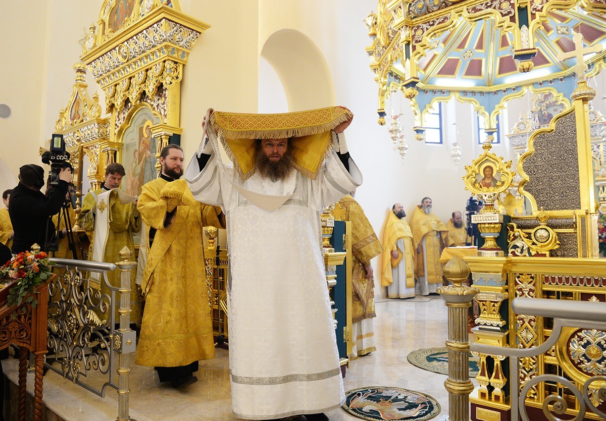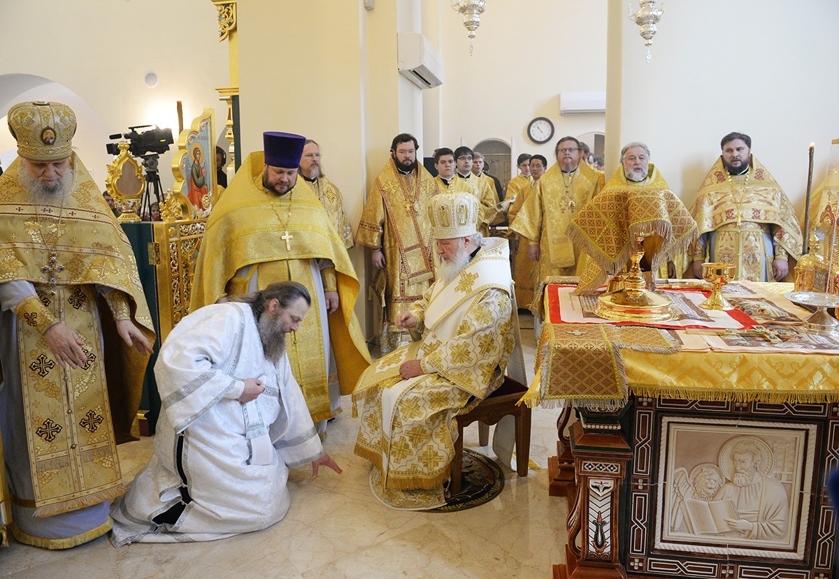 За Литургией Святейший Патриарх Кирилл рукоположил диакона Виталия Родина, клирика Заиконоспасского ставропигиального мужского монастыря города Москвы, во пресвитера.