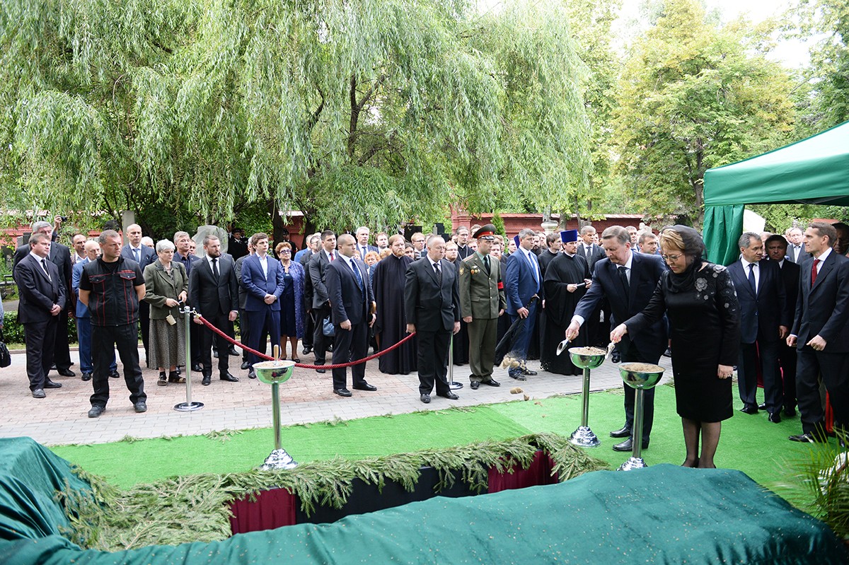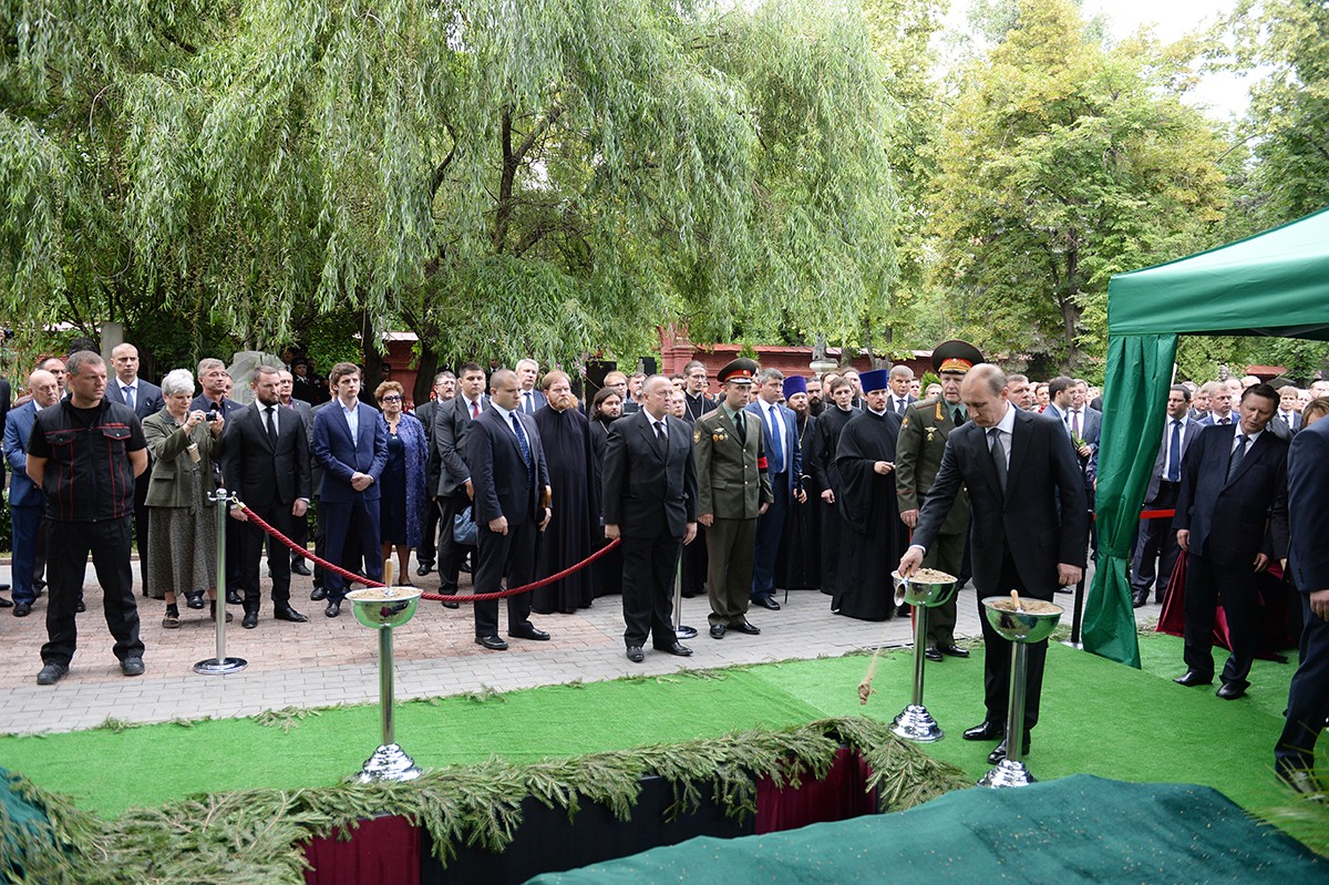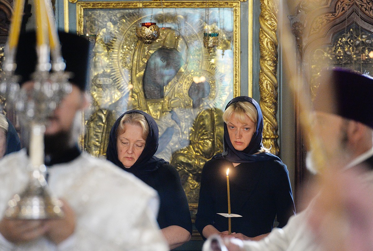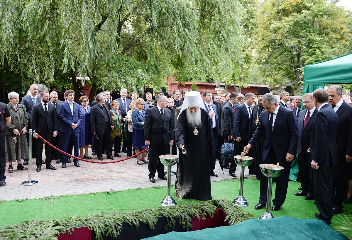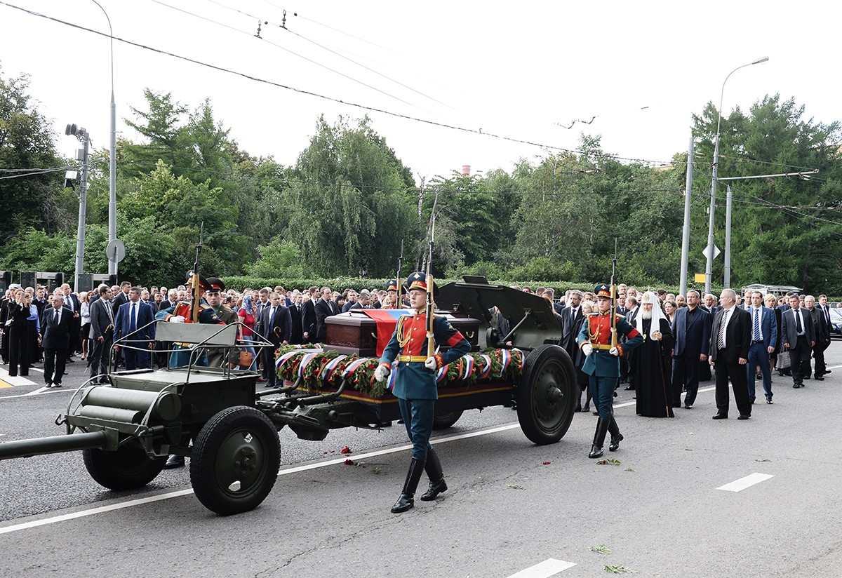 В храме присутствовали Президент Российской Федерации В.В. Путин, председатель Совета Федерации ФС РФ В.И. Матвиенко, председатель Государственной Думы ФС РФ С.Е. Нарышкин, руководитель Администрации Президента РФ С.Б. Иванов, министр иностранных дел РФ С.В. Лавров, министр обороны РФ С.К. Шойгу, представители органов власти и общественных объединений, родственники усопшего, — сообщает Пресс-служба Патриарха Московского и всея Руси