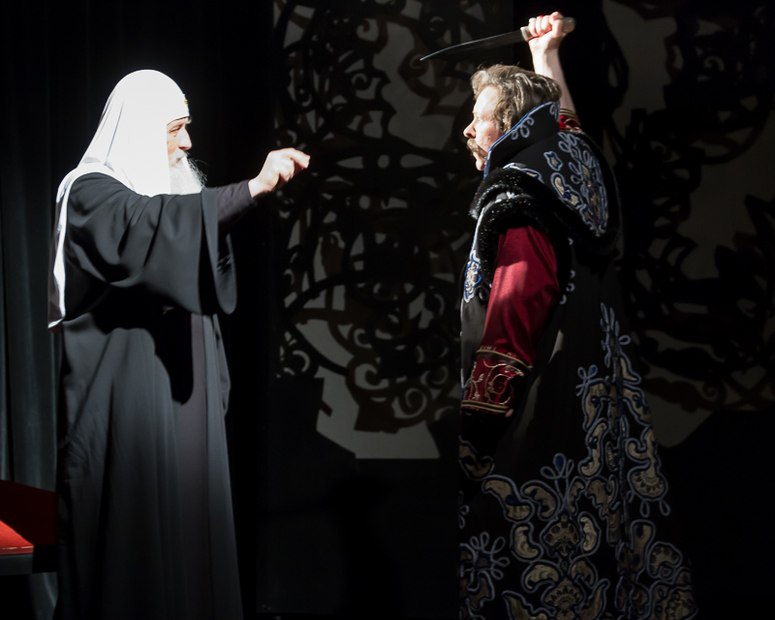 Патриарх Гермоген, как духовный пастырь и как просто православный человек, в спектакле — это образец абсолютной духовной непоколебимости, несокрушимая скала, о которую остервенело бьются волны Смуты. По-человечески ему страшно и больно, он окружен мерзостью поступков и предательством, но его выбор всегда один — делать так, как это должно истинному христианину. И никогда, ни в жесте, ни в слове, ни в решениях, он не отступает от христианского долга.