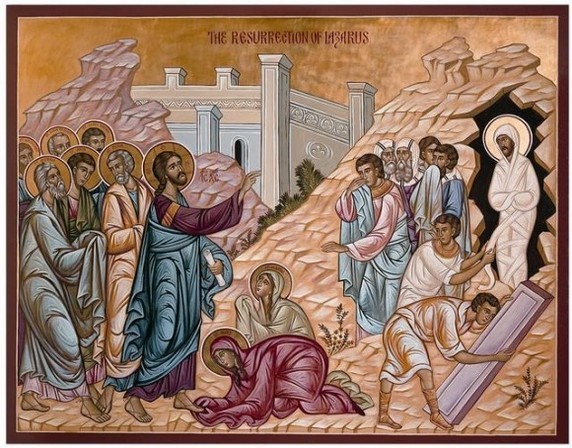 Присовокупим нечто из древних преданий к сказанию евангельскому. Лазарю было около 30 лет, когда он воскрешен из мертвых, и столько же почти лет прожил он после того. По воскресении своем он будто вопросил Господа: должно ли ему будет умереть в другой раз? Образ жизни и поступков воскресшего Лазаря был так строг, что никто не видел на лице его улыбки; много вместе с сестрами своими он содействовал распространению веры христианской и скончался епископом Массилийским на острове Кипр.