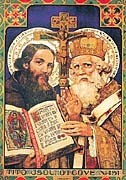 В 863 году братья отправились в Моравию. Там они с большим успехом проповедовали христианство, совершая богослужение на славянском языке. В Моравию приходили миссионеры и из Германии, которым было непривычно слышать славянское богослужение. Литургия на славянском языке казалось им кощунством. На западе установился обычай читать Библию и совершать богослужение только на трех языках: еврейском, греческом и латинском.