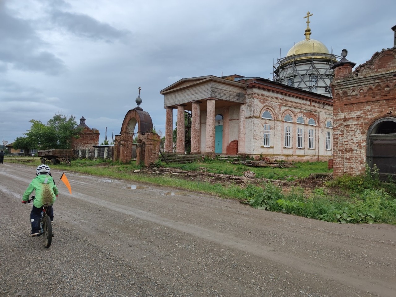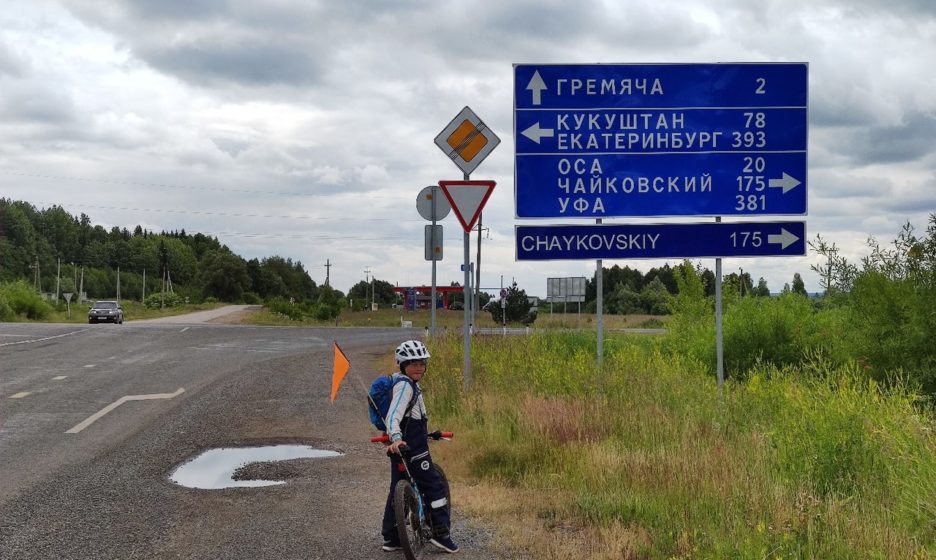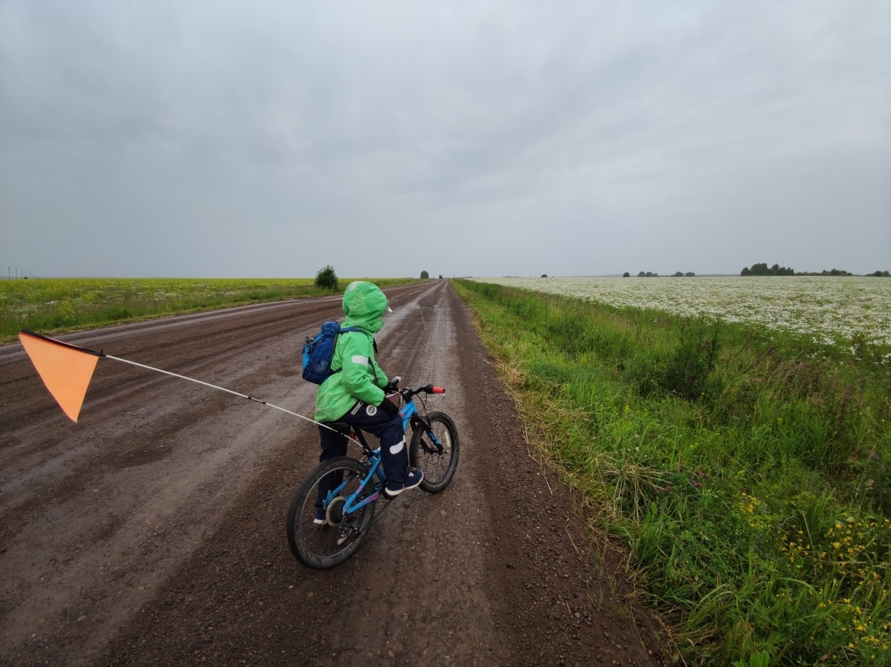 У нас проходят две большие трассы — М7 и М5. Зная, как все непросто в России на дорогах, я старалась строить маршрут больше по полевым и грунтовым дорогам. Однако особенность почвы в Удмуртии такая, что здесь очень много глины. И если тебя застал дождь на глинистой дороге, то будет очень сложно. Если взрослые люди, то можно пронести 20 километров на себе велосипед. Но тут дети же еще, сцепки тандемные.