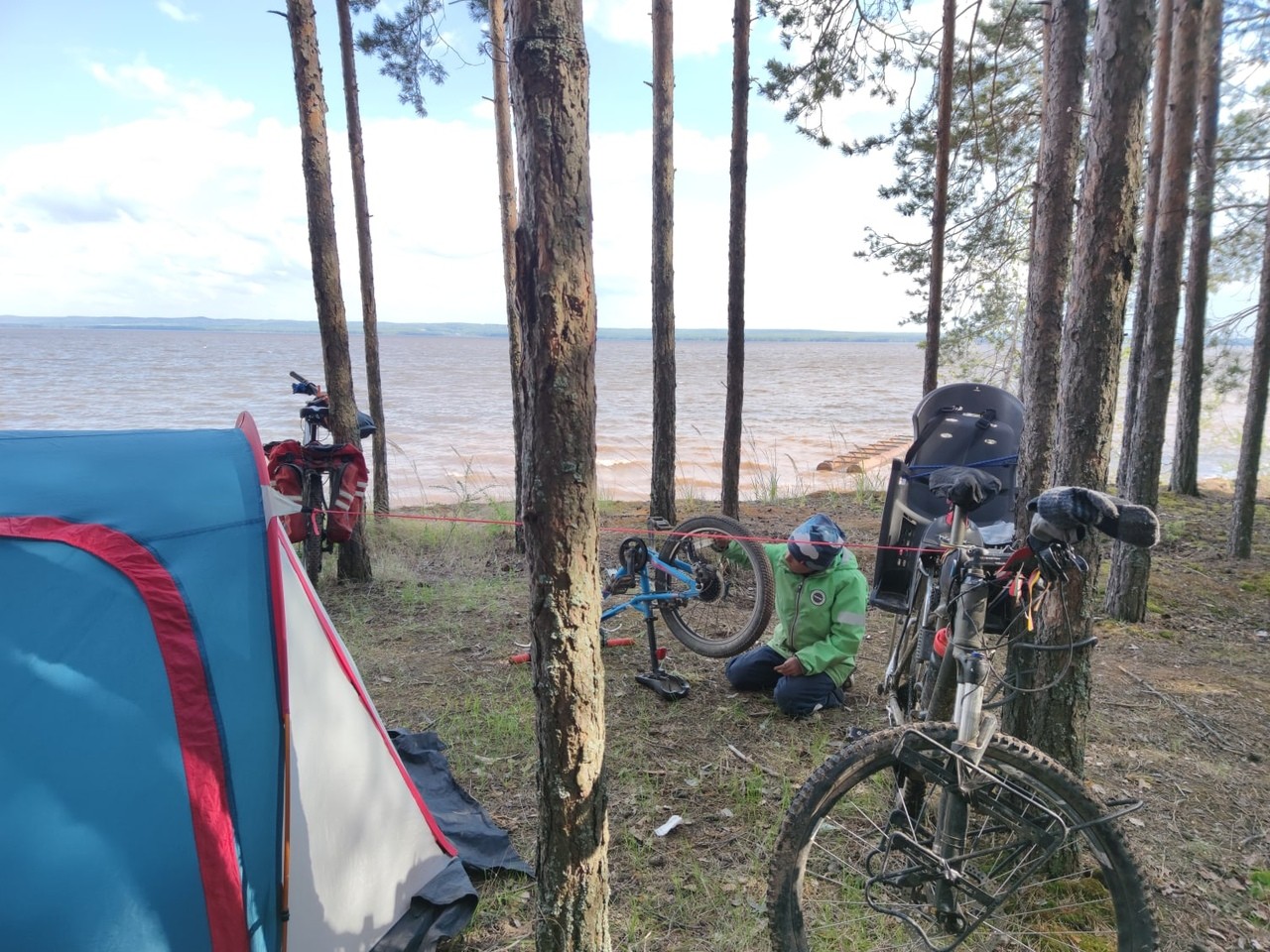В городах не были. Изредка заходили в сельские магазины за продуктами. Но в магазины ходить запрета не было. Потом у меня появилась мысль, что майские праздники нужно провести на природе. Мы ни с кем не контактировали, это был наш автономный велопоход. В нем мы были восемь дней, два из них — дождливые. Прошли 227 километров за это время. Увидели шикарный разлив реки в одном из любимых моих мест в нашем регионе — устье реки Сивы. Здесь она впадает в Каму.