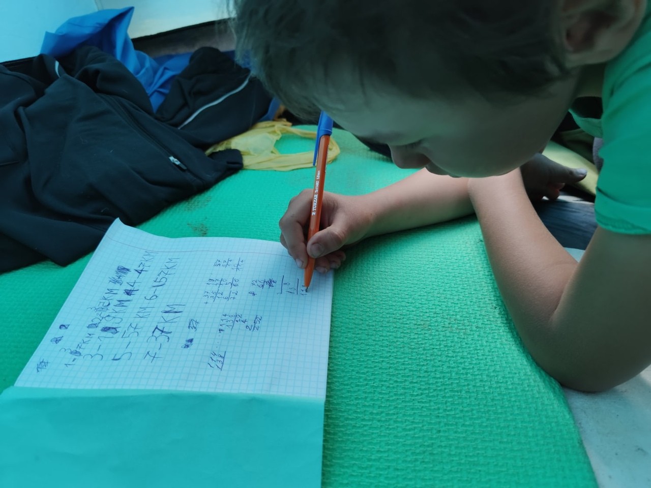 Рома сейчас уже осознанно задает вопросы: например, почему река Кама такая полноводная и почему она разливается. Мы объясняем, сравниваем реки с сообщающимися сосудами и человеческим организмом. Еще он ведет учет пройденных километров, решает несложные задачки из нашей туристической жизни.