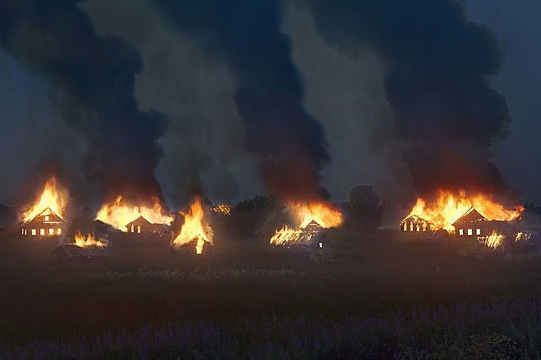 А было так: сначала появилось интервью (http://www.colta.ru/articles/art/16662) фотографа Данилы Ткаченко, в котором он описал свой последний по времени арт-проект под названием “Родина”. Съемки проходили в заброшенных деревнях (где – фотограф не назвал), дома в которых Ткаченко поджигал в качестве художественного жеста. Чтобы, по его словам, освободиться от ностальгии.