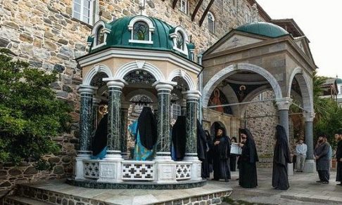 21 августа / 3 сентября 1903 года во время раздачи милостыни убогим монахам у Великих монастырских ворот Свято-Пантелеимонова монастыря инок Гавриил сделал фотоснимок и, когда его проявил, на черно-белой фотографии, к своему величайшему удивлению, увидел образ Богоматери, смиренно получавшей благословенный укрух хлеба.
