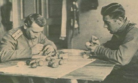 Розовощекие детишки в солдатских шинелях и бравые Георгиевские кавалеры. Бодрые раненые в госпиталях и сестры милосердия, одаривающие крашенками пострадавших за Веру, Царя и Отечество воинов. Все это — пасхальные открытки времен Первой мировой войны.