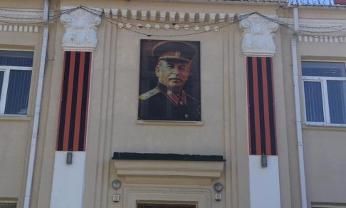 Портрет Сталина установили ко Дню Победы в центре кубанского Белореченска