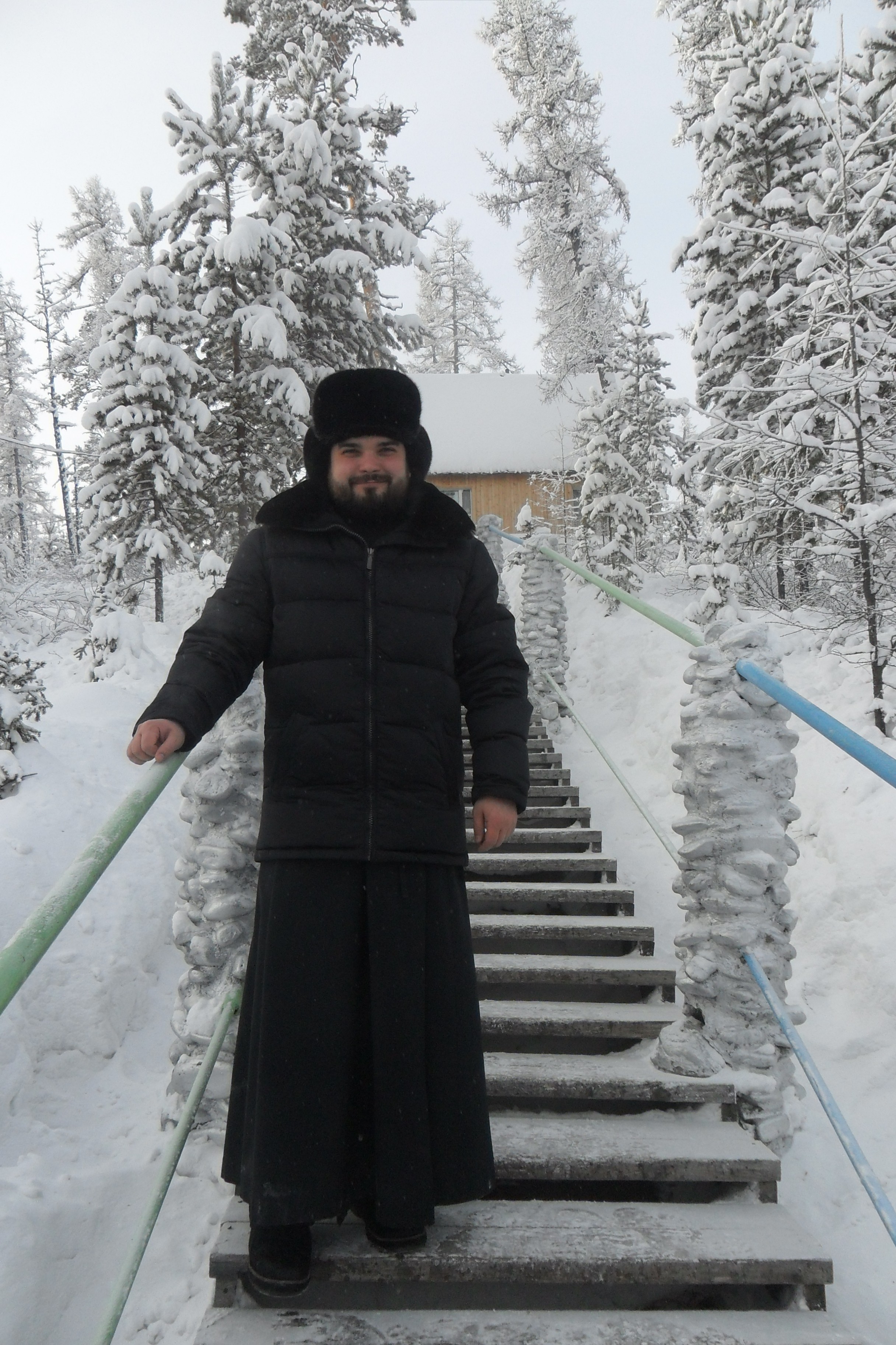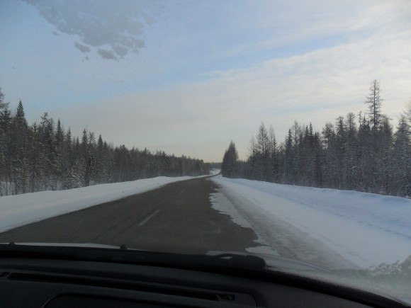 Дорога была пуста, ближайший очаг цивилизации — как раз Алдан, поэтому я, наученная страшными рассказами о замерзших посреди Якутии путниках, принялась рассылать смс-ки с просьбами помолиться (здесь, к счастью, уже была связь). Отец Аркадий же молился, наверное, сам, а параллельно звонил в Алдан собрату-благочинному (уже округа Алданского) иеромонаху Макарию с весьма конкретной просьбой привезти нужный ключ. А также пытался высмотреть на дороге какого-нибудь доброго самарянина.