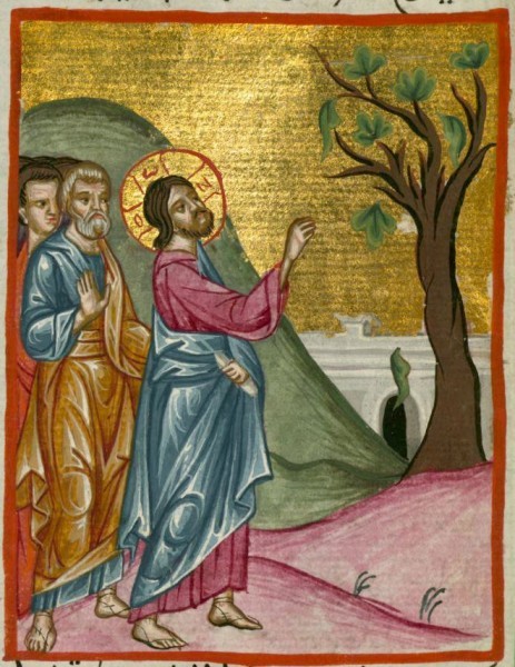 Вечером в воскресенье Господь уходит ночевать в семейство Лазаря. А утром в понедельник возвращается в Иерусалим и проклинает смоковницу. Эту историю можно понимать как притчу, ведь у бесплодной смоковницы, как мы знаем, и не могло быть плодов в это время.