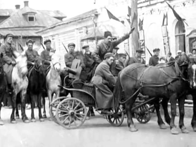С щемящим чувством мы разглядывали их в окошко. Одеты были очень просто, во всяком случае, никакой формы не видно. На едущих впереди верхами, очевидно командирах, навешана масса всяких побрякушек. За кавалерией потянулись бесконечные тачанки, с пулеметами и без них. Увидели черный плакат. На нем красными буквами намалевано: «Мы за большевиков, бей жидов и коммунистов!» Многие в тельняшках и бескозырках. Поют «Яблочко» с гиканьем и присвистом: «Эх, яблочко, да с листочками, едет батько Махно, да с сыночками».