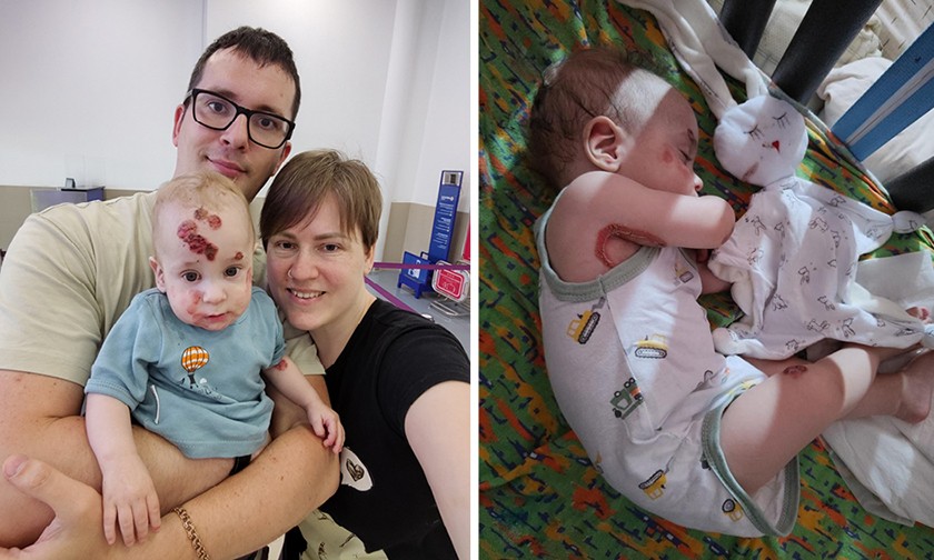 Максим родился раньше срока и первый месяц жизни вынужденно провел в больнице. Ему лечили дыхательную недостаточность и кормили через зонд специальными калорийными смесями, чтобы он поскорее набрал вес. В паху у малыша, в складочках, мама сразу заметила красные пузырьки, похожие на потницу.