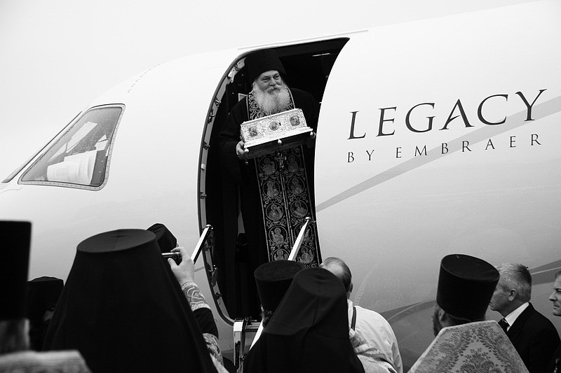 Между прочим, в его блоге выложены несколько замечательных черно-белых фотографий со встречи святыни в аэропорту.
