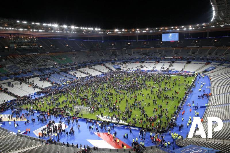 Теракты в Париже: Французы поют Марсельезу во время эвакуации со стадиона