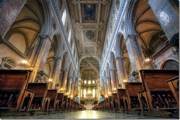 «Вы поймите, — говорил он очень темпераментно, — чтобы открыть этот сосуд с кровью, нужно иметь три ключа. Таков вековой порядок. Один ключ у настоятеля собора. Другой — у мэра города, но это еще полбеды. Но третий ключ у принца неаполитанского, и это невозможно — его вызывать! Он бывает здесь только три раза в году, когда мы открываем сокровищницу». Тут мы уже окончательно осознали невыполнимость нашей просьбы, поблагодарили, попрощались. И, кстати, с удовольствием сняли сам собор. Смотрите — очень надеюсь, что вам будет интересно.