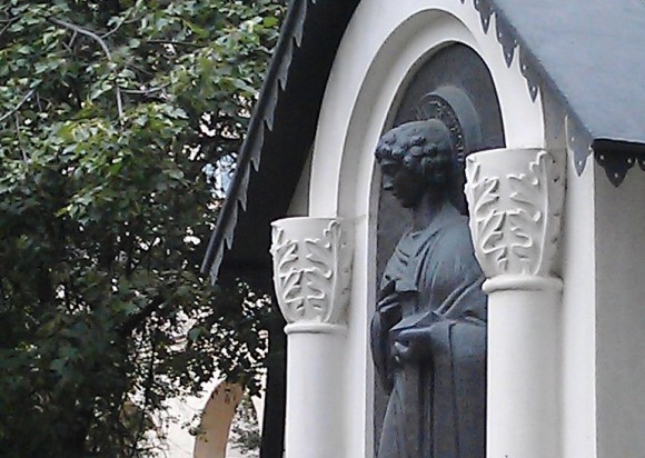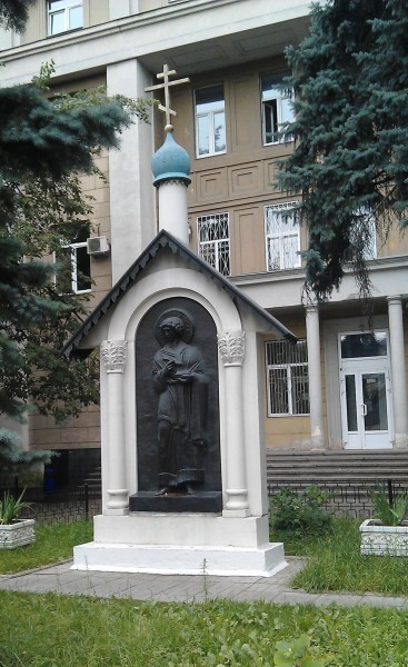 Перед входом в институт установлена фигура вмч. Пантелеимона. Ведь здесь как, наверное, нигде все понимают, что успех или неуспех лечения зависит не только от человеческих усилий. То есть без них не обойтись, но необходимо и нечто большее…