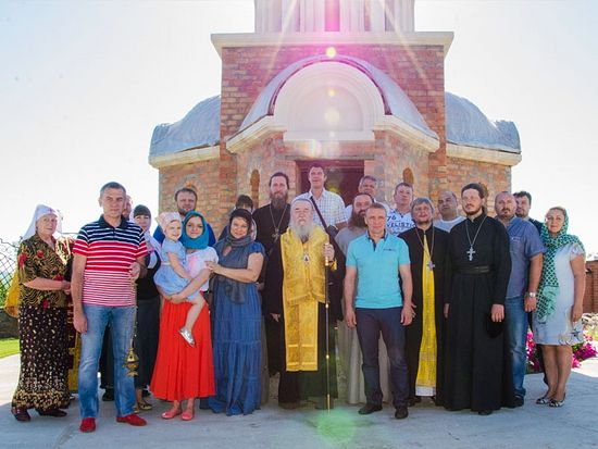 Владыка Ириней и прихожане у часовни святой блаженной Матроны