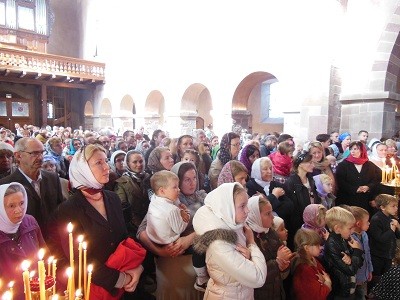 Праздничная служба прошла на церковнославянском языке, частично французском и немецком, сообщает сайт Представительства Русской Православной Церкви в Страсбурге