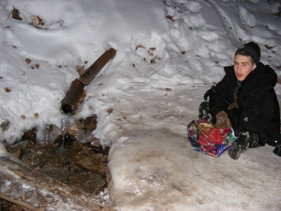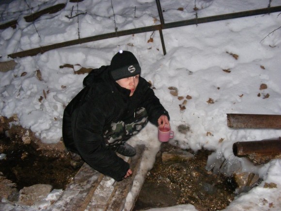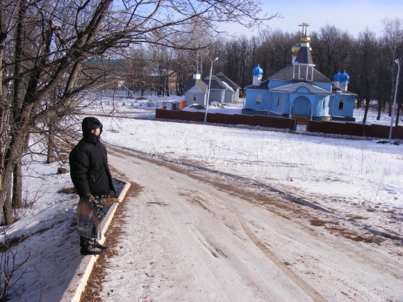 Гошу приводят после завтрака. Сынок неожиданно для меня проявляет истинное милосердие. Не скачет, не шалит. Мы сидим в тишине, рисуем, играем. Я постепенно прихожу в себя и мы выходим на улицу. Идем на источник-родничок, расположенный в ближнем леске. Умываемся, набираем воду в бутылки. Эту воду можно пить некипячёной. Источник не замерзает и зимой, и тропинка к нему протоптана круглый год. Умывание придает сил. А теперь мы идём в церковь! В Свято-Георгиевский храм. Спускаемся по аллее. Спуск довольно крутой, я физически не могу догнать Гошу. Остаётся только надеяться, что обойдётся без происшествий. Обошлось.