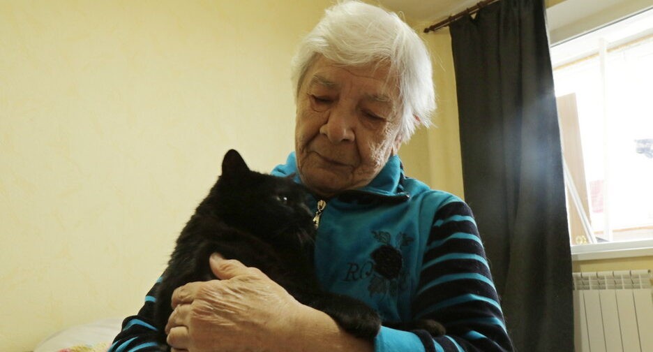 Тамара Петровна сидит на крошечной кухне, гладит Тему и благодарит волонтеров.