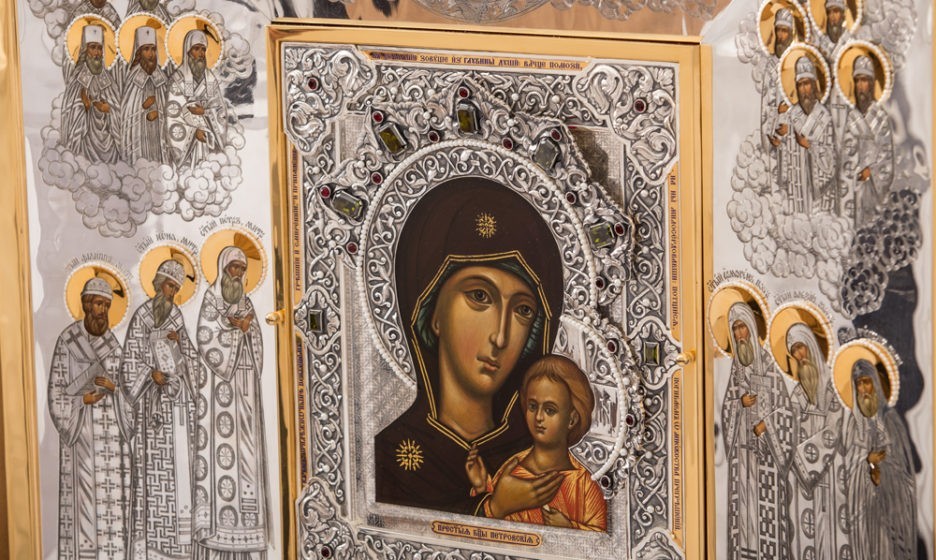 Во время посещения Ратской обители святителем Максимом, митрополитом Киевским и всея Руси, святой Петр поднес ему в дар эту икону. Митрополит перенес ее во Владимир на Клязьме, где тогда находилась его кафедра. По смерти святителя Максима игумен Геронтий, решивший захватить митрополичий престол, ходил с этой иконой к Константинопольскому Патриарху Афанасию (1303-1311).