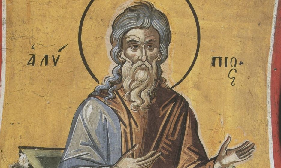 Мать его, христианка, рано овдовев, отдала сына в послушание и на обучение епископу Феодору, а сама, раздав имение нищим, стала подвизаться при церкви и была удостоена звания диаконисы. С юных лет святой Алипий желал посвятить свою жизнь Богу и стремился к уединенной жизни, однако епископ Феодор не отпускал его от себя.