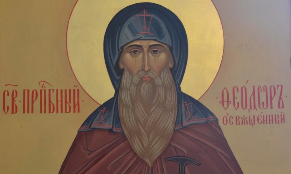 Преподобный Феодор происходил из Египта и был сыном богатых и знатных родителей-христиан. В нем рано проявилось стремление к иноческой жизни. Однажды, когда в доме родителей в честь праздника Богоявления было большое угощение, отрок, не желая принимать участие в пиршестве, скорбел, что за радости земной жизни будет лишен их в жизни будущей.