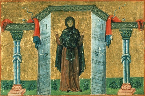 Напоминая слова апостола, советовала соблюдать пост «не с огорчением и не с принуждением: ибо доброхотно дающих любит Бог». В обители ее стараниями была построена молельня и алтарь, где погребли мощи святых: пророка Божия Захарии, святого Первомученика Стефана и Сорока святых, принявших муку в Севастии. К этому времени святой Апиниан отошел ко Господу. Святая Мелания погребла мощи блаженного и провела около четырех лет возле этого места в посте и непрестанной молитве.