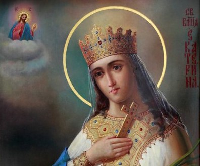 Святая великомученица Екатерина была дочерью правителя Александрии Египетской Конста во время правления императора Максимина (305 — 313). Живя в столице — центре эллинской учености, Екатерина, обладавшая редкой красотой и умом, получила блестящее образование, изучив произведения лучших античных философов и ученых. Юноши из самых именитых семейств империи искали руки прекрасной Екатерины, но ни один из них не стал ее избранником. Она объявила родителям, что согласна выйти замуж лишь за того, кто превзойдет ее в знатности, богатстве, красоте и мудрости.