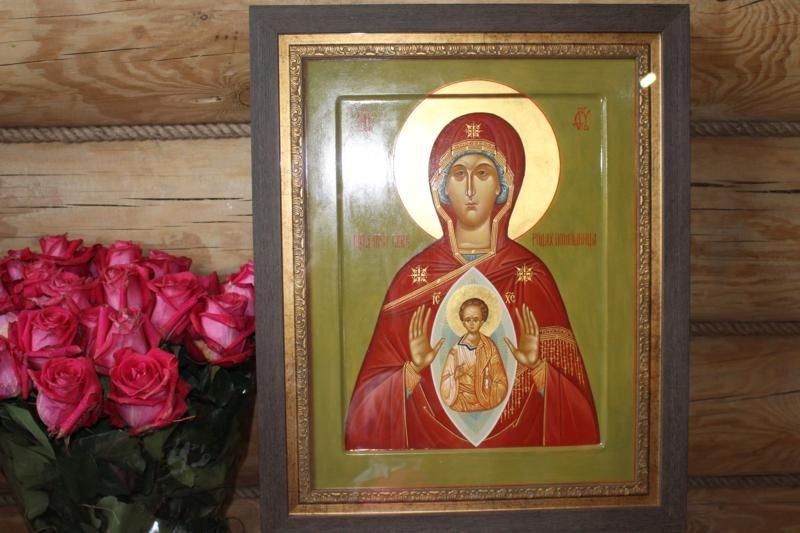 С незапамятных времен в минуты жесточайших страданий при рождении детей, когда смерть так близка, женщины прибегают с особенно горячей молитвой к Спасителю и Пречистой Его Матери. В благочестивых семействах и в наше время можно видеть икону Богоматери, называемую «Помощь в родах». На ней Богоматерь изображается стоящей в рост с воздетыми для молитвы руками и с Предвечным Младенцем на лоне. Этот образ напоминает несколько икону «Знамение».