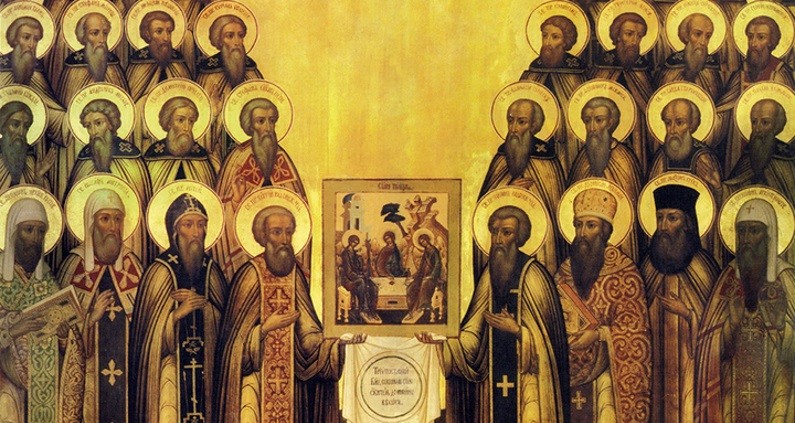 История установления соборного празднования святых Радонежской земли восходит к середине XVII века, когда были восстановлены первые списки учеников преподобного Сергия Радонежского, был напечатан «Канон молебен преподобным и богоносным отцом нашим игумену Сергию и ученику его Никону, чудотворцам». Приблизительно к тому же времени относится написание первой иконы Собора Радонежских святых, которую поместили на западной стороне левого столпа Троицкого собора, и местной иконы 1671 года преподобных Сергия и Никона, которая была поставлена у северных врат в иконостасе Троицкого собора.