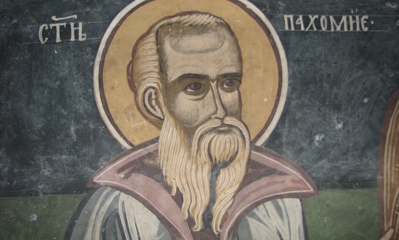 Родился преподобный Пахомий в III веке в Фиваиде (Верхний Египет) от родителей язычников и получил хорошее светское образование. С юности он имел задатки доброго нрава, был целомудрен и рассудителен. Когда Пахомию исполнилось 20 лет, он был призван в войска императора Константина (по-видимому, в 315 году). Новобранцев разместили в здании городской темницы под охраной стражи. Местные христиане пришли с запасами пищи, кормили воинов и усердно им служили. Когда юноша узнал, что эти люди так поступают ради своего Бога, исполняя Его заповедь о любви к ближним, это глубоко запало в его чистую душу. Пахомий дал обещание сделаться христианином. Вернувшись из войска после победы, Пахомий принял святое Крещение, поселился в уединенном селении Шенесит и сразу же стал вести строгую подвижническую жизнь. Почувствовав необходимость в духовном руководителе, он обратился к Фиваидскому пустыннику Паламону, был принят старцем с любовью и стал ревностно проходить монашеские подвиги по примеру своего наставника.