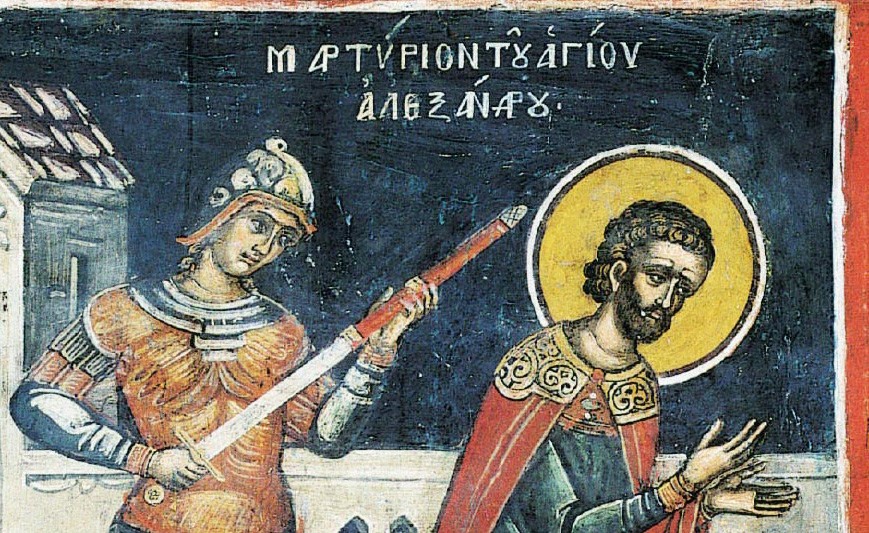 Он был военным, служил в полку трибуна Тивериана в Риме. Ему шел 18-й год, когда римский император Максимиан Геркул (284–305) издал приказ, чтобы все граждане в определенный день явились в загородный храм Зевса для принесения жертвы. Трибун Тивериан собрал своих воинов и приказал им идти на это празднество, но юноша Александр, с детства воспитанный в Христовой вере, отказался и объявил, что он не будет приносить жертву бесам. Тивериан, боясь за себя, донес императору Максимиану, что в его полку есть воин – христианин. За Александром сразу же были посланы воины.