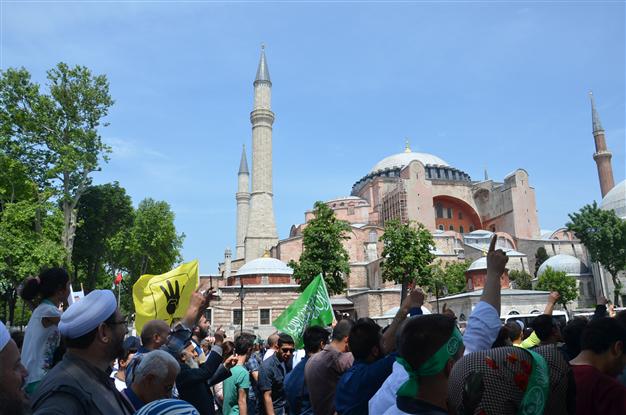 Люди держали в руках плакаты с надписями: «Собор Святой Софии должен снова стать мечетью». Митинг был организован неправительственными организациями Турции. Турецкие консервативные политические партии и общественные исламские движения также поддерживают инициативу вернуть собору статус мечети. Тем не менее на уровне правительства эта инициатива одобрения не находит.