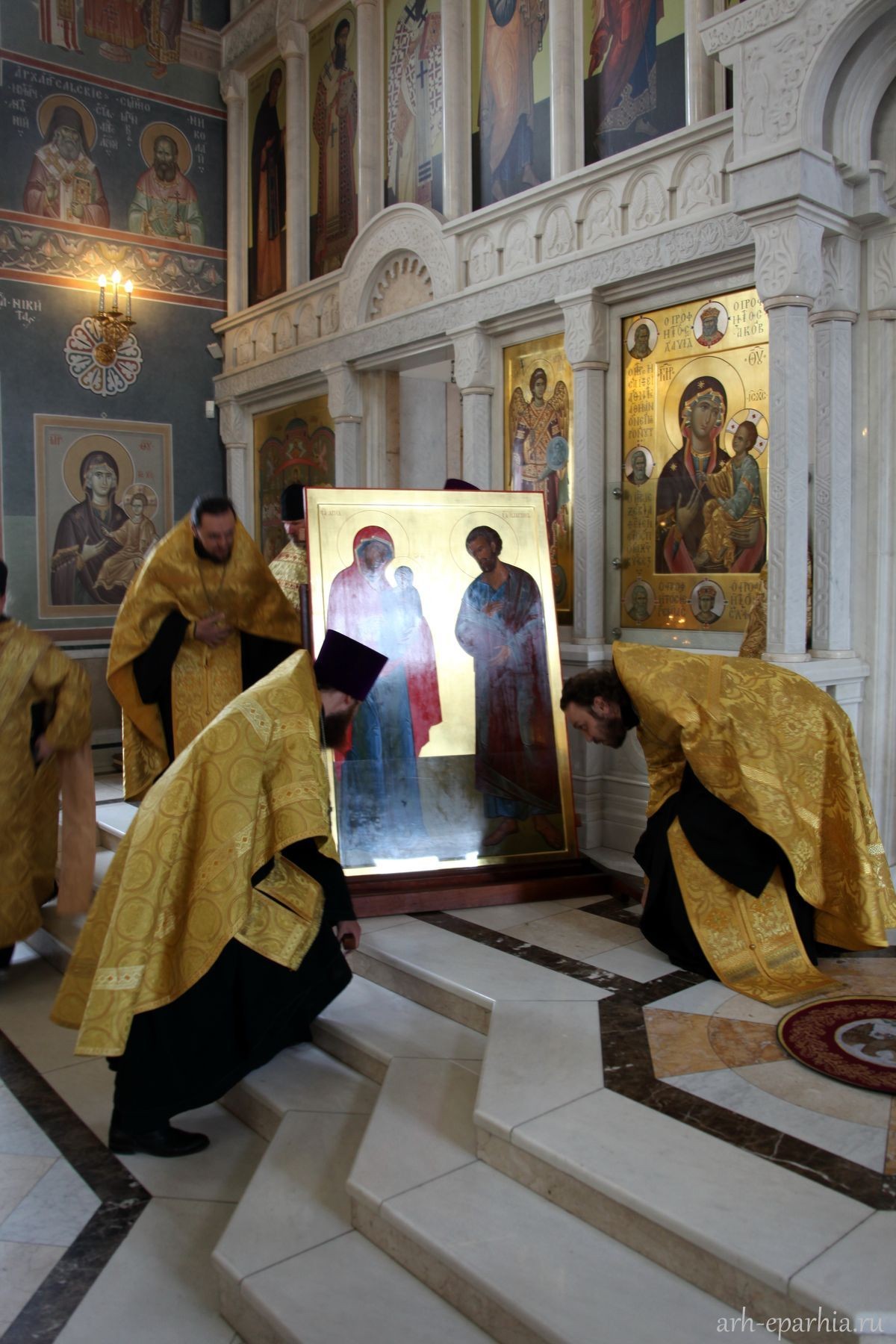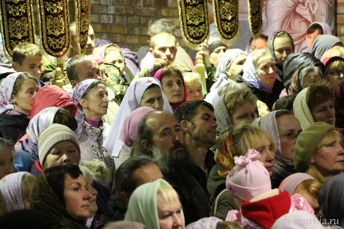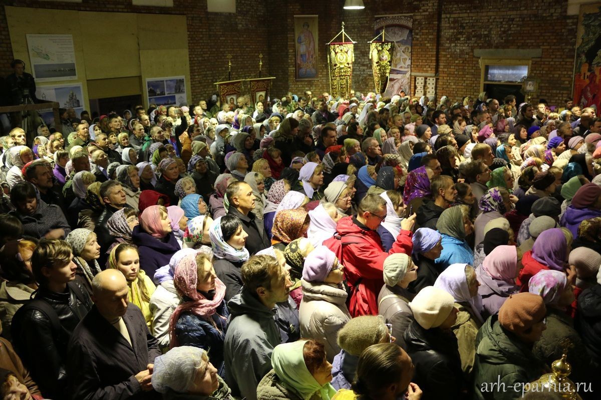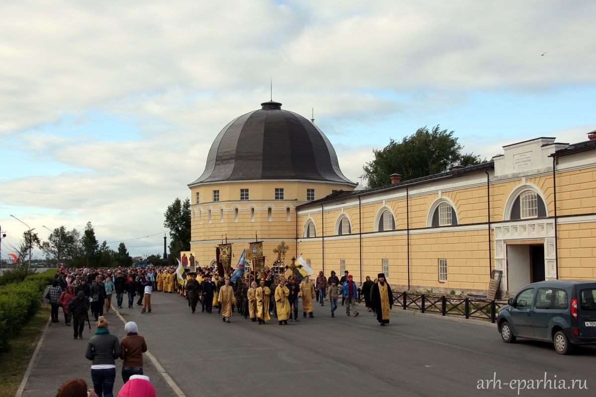 На протяжении пути крестоходцев сопровождал колокольный звон. Впервые жители Архангельска смогли услышать колокола Михаило-Архангельского собора. В строящемся храме был совершен молебен праведным родителям Пресвятой Богородицы