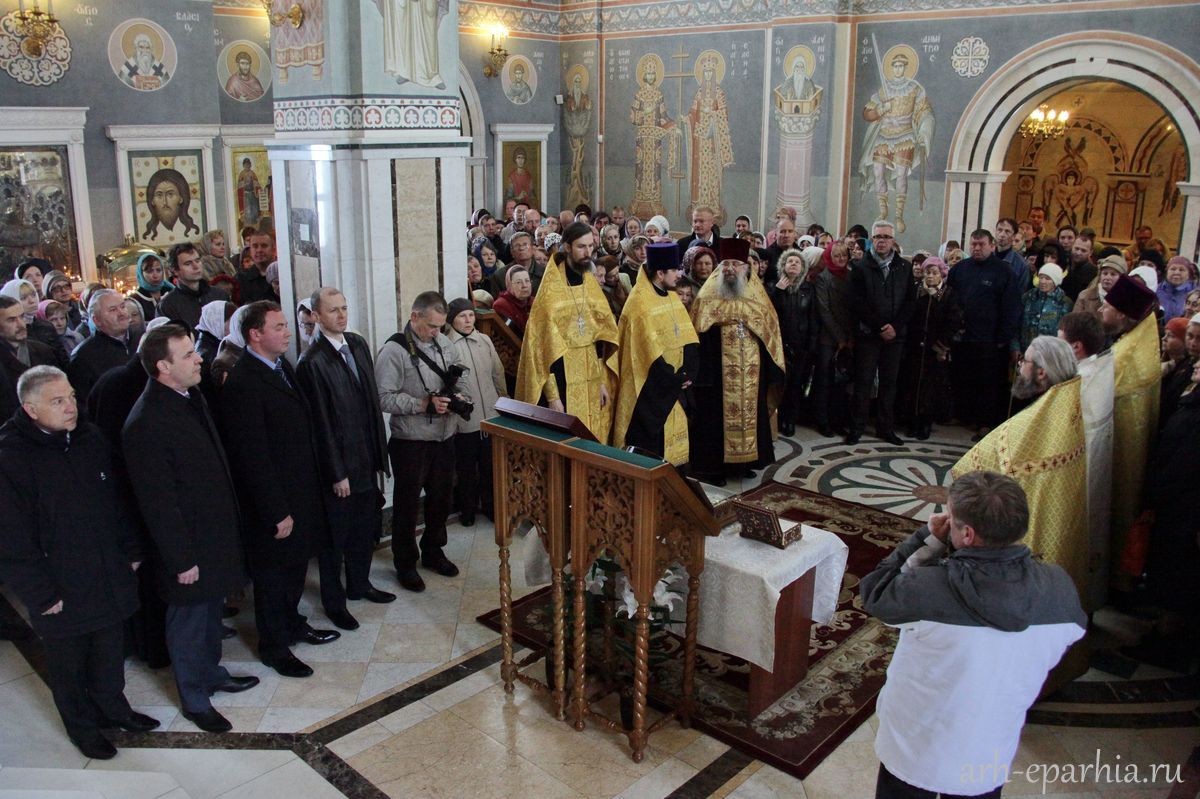 «Сегодня особенная радость, мы прошли по Архангельску с самой древней святыней – мощами праведных Иоакима и Анны. Это угодники Божии являют собой образец постоянства в вере, молитве и уповании. Много лет они молились о даровании ребенка, но у Бога были Свои планы. В старости Он дал им плод, который прославил все человечество, принеся в лице Божией Матери величайшую жертву веры и любви, основанную на глубочайшем смирении», — напомнил митрополит Даниил.