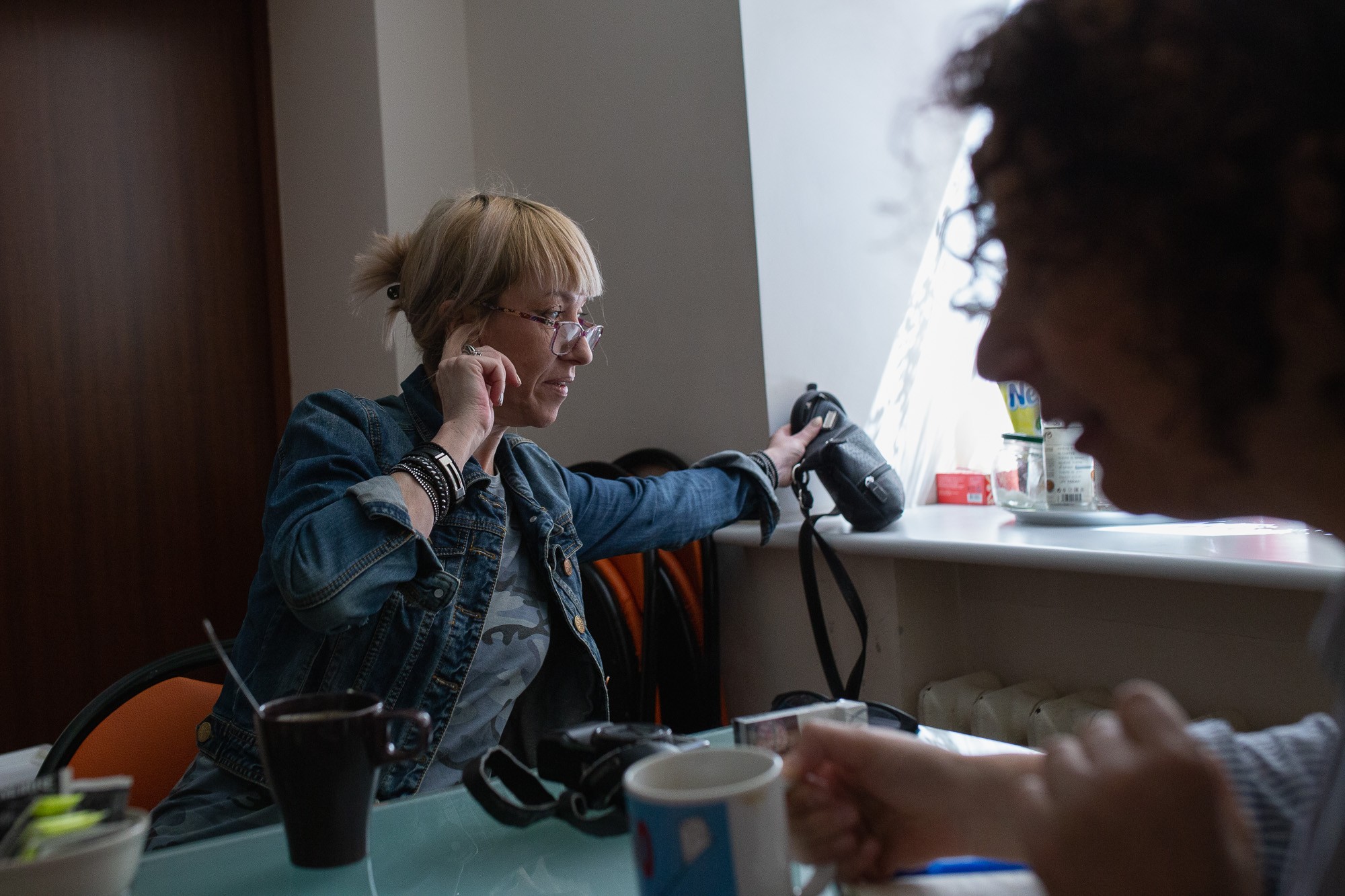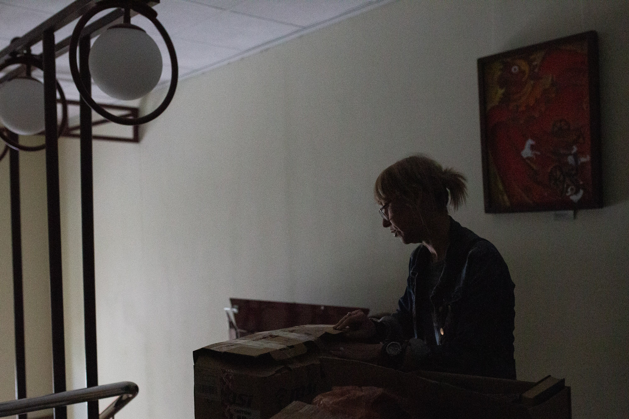 Мы не виделись с Аней 30 с лишним лет. И вот встречаемся в воскресенье, ее единственный выходной, в «Мемориале» на Каретном ряду, куда она приехала с сыном Сережей и коллегой-напарником Юрием Владимировичем забирать гуманитарную помощь для острога, как она часто называет тюрьму. Распоряжаясь, какие коробки куда ставить, и заглядывая в них («ага, книги, хорошо», «телевизор, отлично»), она одновременно отрывисто отвечает на телефонные звонки: «Да, я вас услышала. Меня изругают, но про избиение в Матроске статья объективная. Неправды в ней нет». Наконец мы садимся на кухне пить кофе, и я задаю вопрос, который мне не дает покоя с того самого момента, что я начала читать ее знаменитую ФБ-страницу с тюремными зарисовками. В них она называет себя Алисой, а свое место работы – Зазеркальем. Почему?