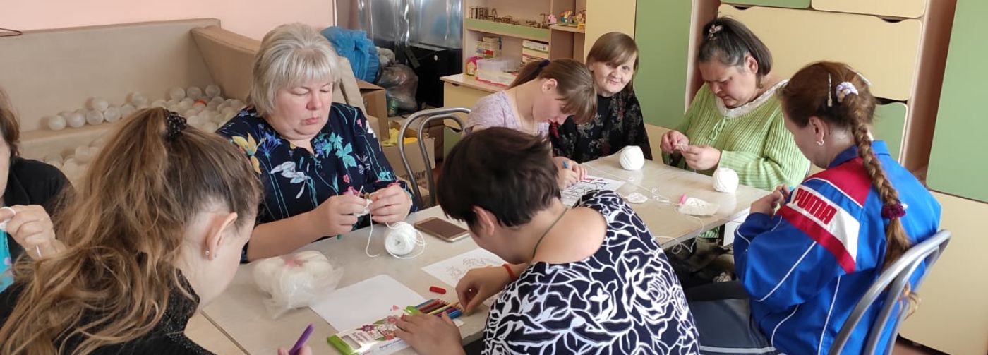 Ирина Ефимова, руководитель ПМК «Призвание», проводить занятия в психоневрологическом интернате стала случайно: как-то на Пасху священник благословил сходить в ПНИ «что-нибудь спеть». Потом начали готовить пациентов к исповеди, постепенно перешли к занятиям, разработали программу, сейчас по ней занимаются. В основном все уроки рассчитаны на мелкую моторику, благодаря чему вырабатывается усидчивость, улучшается работа мозга: делают поделки своими руками, учат вязанию. Одно время стряпали пироги, пока не сломалась печка.