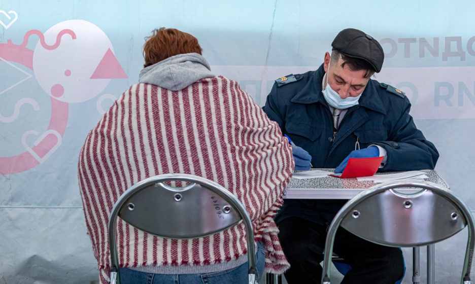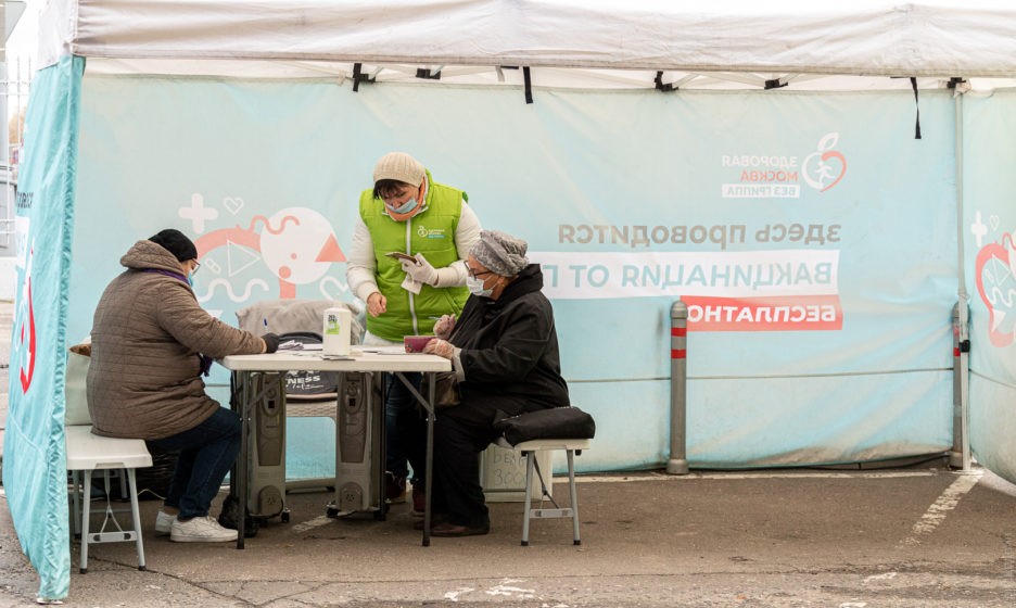— С сентября ты у нас только третья такая, — говорит Ахмад, вешая на меня бейдж волонтера. — И я людей понимаю. Что тут сидеть? То дождь, то ветер, записывать всех, скучно! Сейчас вообще зачем волонтер? Вот в сентябре был нужен — 400 человек в день приходило, вот такие очереди стояли! Мы в десять рук документы заполняли, столов не хватало. Сейчас за день человек 120 максимум. И то хотят от коронавируса привиться, ха-ха, а не от гриппа. От гриппа привились уже все.