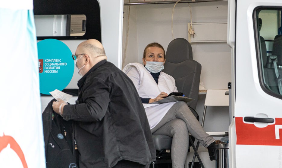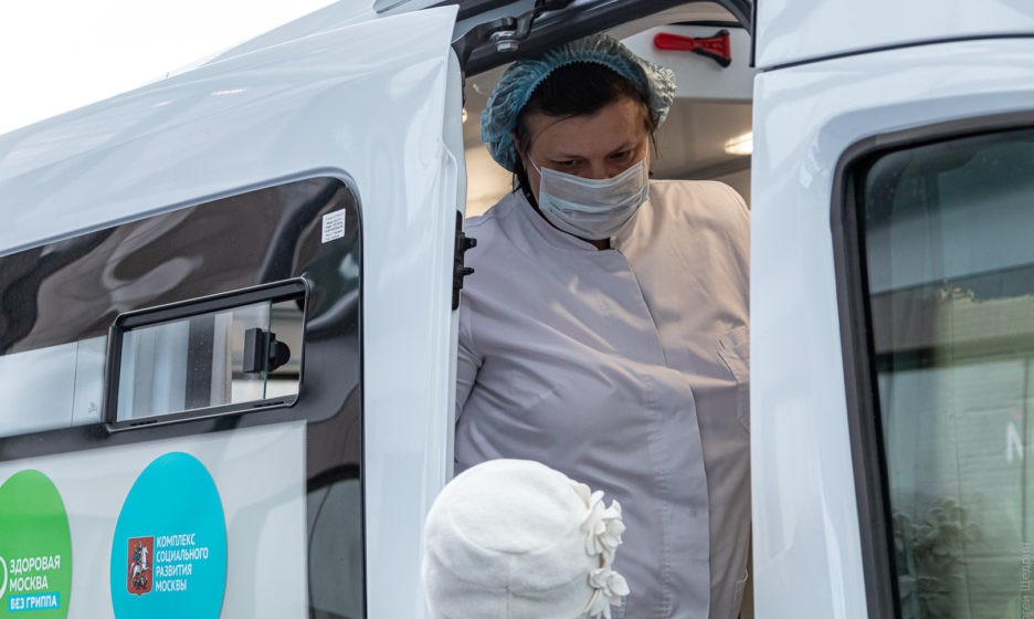 Врач мобильного пункта вакцинации от гриппа. Фото: Сергей Щедрин