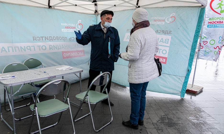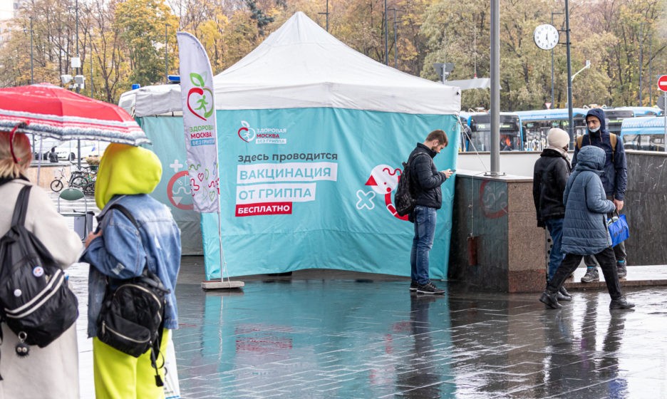 Всеобщая вакцинация от гриппа началась в столице 1 сентября. Всего в Москве работает около 450 пунктов вакцинации, 38 из них — возле станций метро и МЦК. Людей оформляют сотрудники центров социальной защиты и студенты-медики.