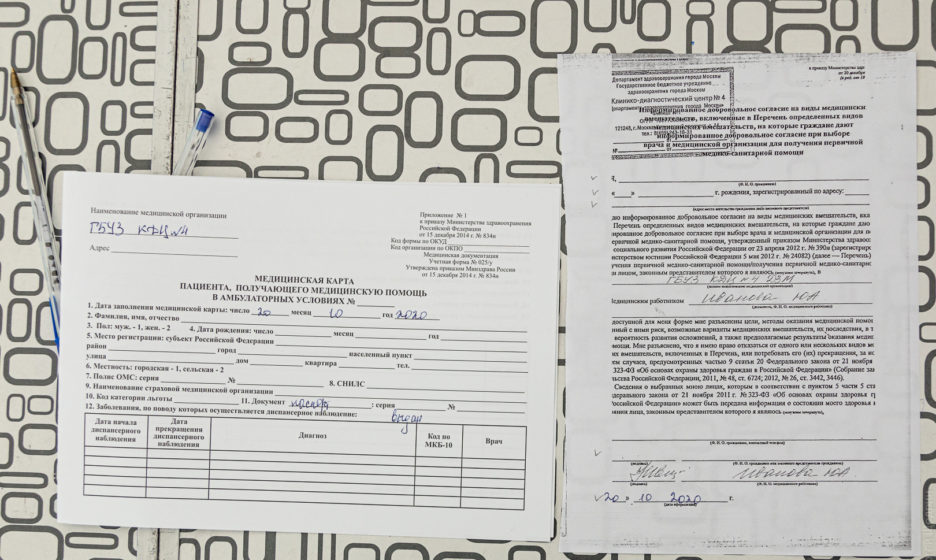 Согласие на прививку и медицинская карта (в некоторых пунктах вместо нее — сертификат). Фото: Сергей Щедрин