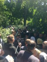 Митрополит Владимир благодарит присутствующих за участие в молитве. Он также сказал, что верующие будут стоять и молиться, пока законопроекты не снимут с голосования.