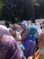 Пожилые участницы молебна сокрушаются, что охраняющие их военные слишком молоды. «Они нас будут бить или защищать?» — спрашивают друг у друга.