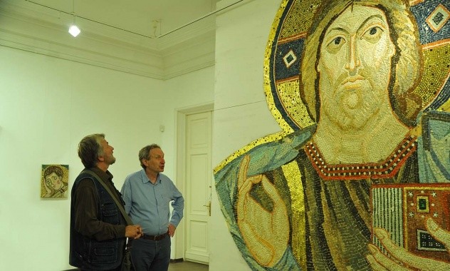 В экспозиции представлены более 50 работ – проекты, фотографии, мозаичные иконы и фрагменты в материале. Выставка продлится по 5 октября.
