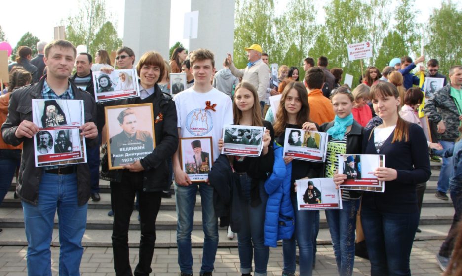 В рядах городской колонны «Бессмертного полка» молодые люди несли портреты священников и монахов — ветеранов Великой Отечественной войны. «Мы чтили героев, обессмертивших подвиг любви к Родине, к народу, к Богу», — говорят православные участники шествия.