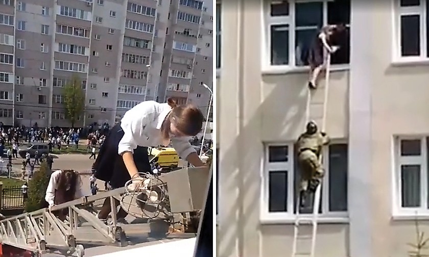 «Пожарные прибыли к школе уже через 6 минут после поступления им сообщения. С помощью лестниц они спасли с третьего этажа 23 человека», — ТАСС.