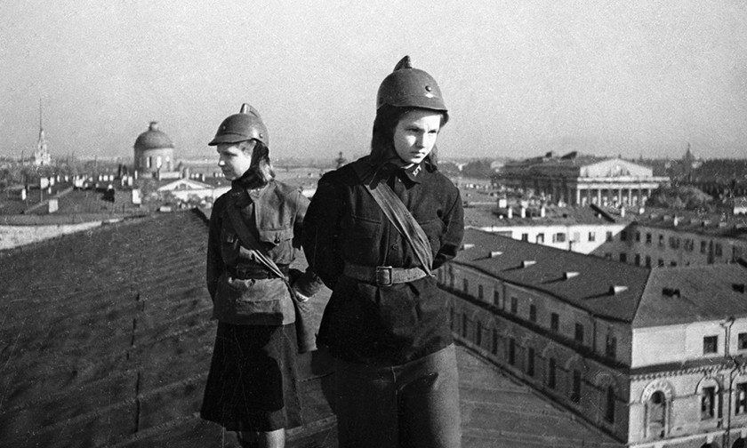 Дети – бойцы местной противовоздушной обороны дежурят на крыше здания Академии наук. 1942 год. Автор Григорий Чертов