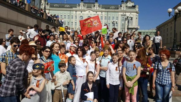 Кстати, в Германию очень давно эмигрировала моя подруга, у нее дочь уже выросла — девочке сейчас 17 лет, по-русски она весьма посредственно разговаривает. В сети девочка увидела видео с этой акции и загорелась… В этом году они приезжают в Москву специально на 9 мая – дочка подруги хочет участвовать в шествии Бессмертного полка и петь с нами. Она заранее стала учить военные песни…